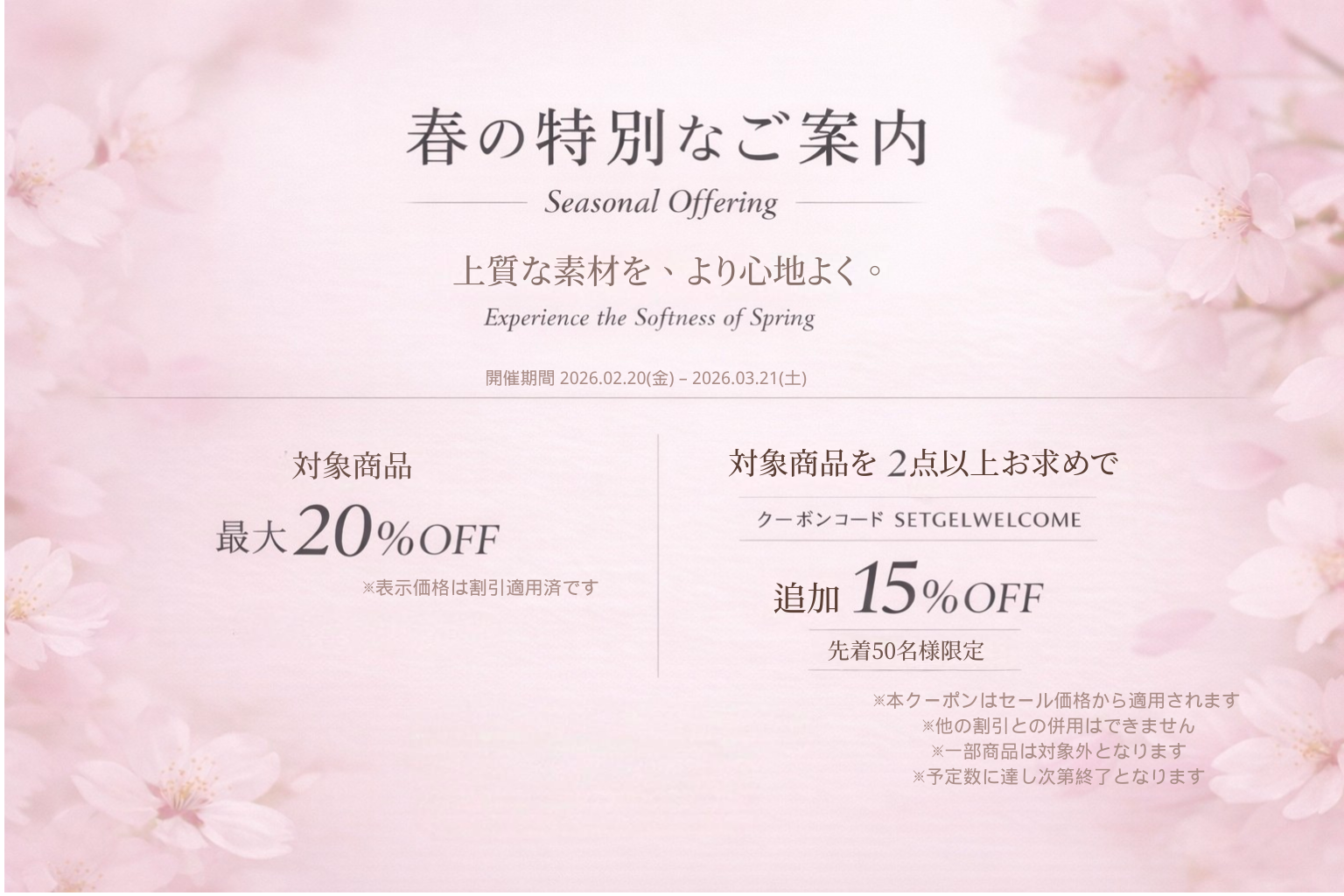 春の特別キャンペーン開催中|Spring Sale