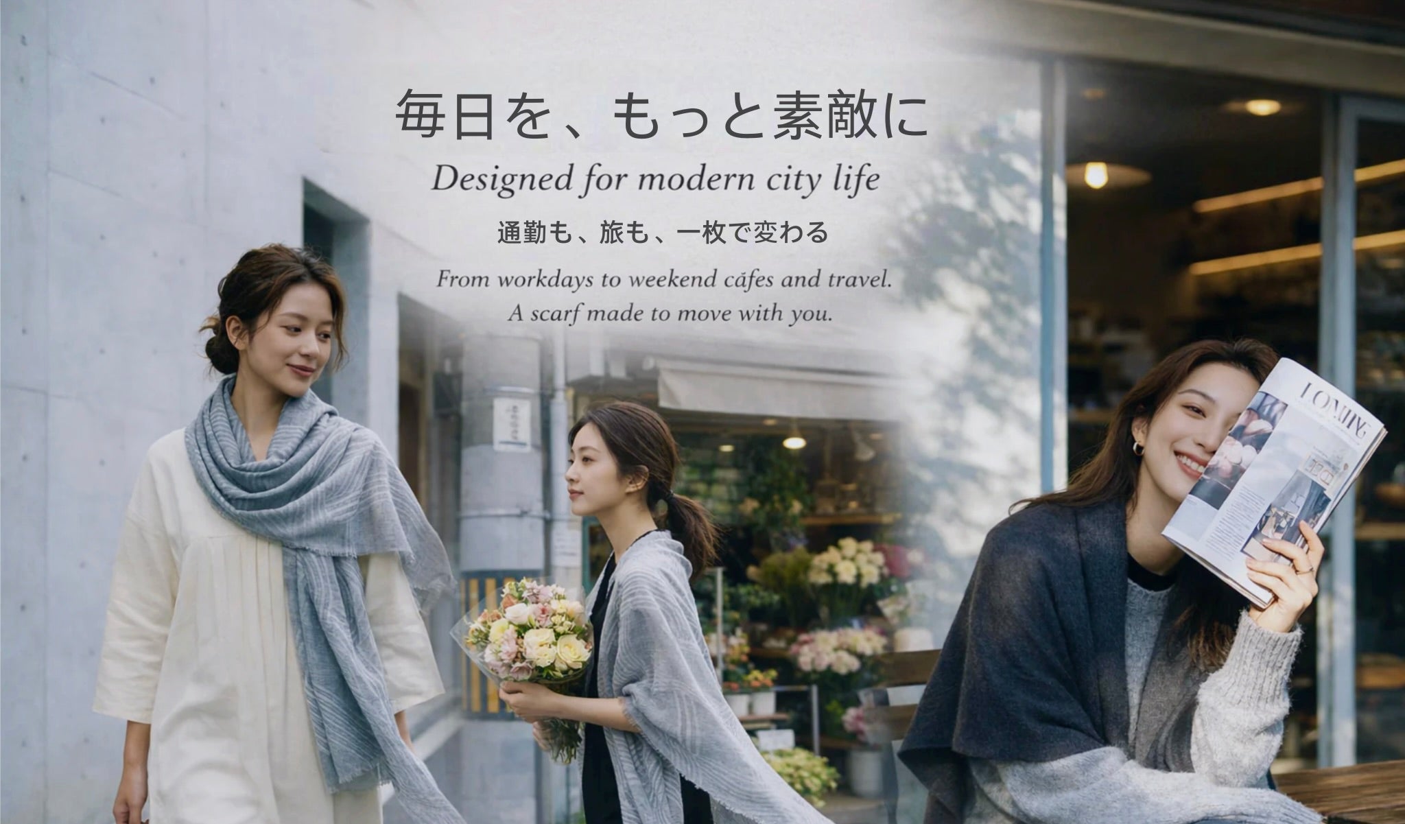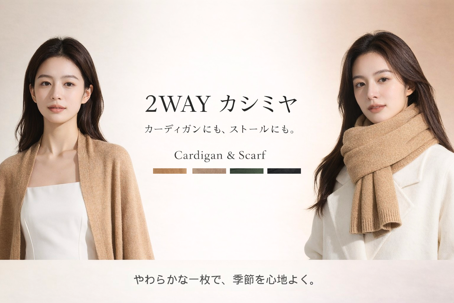 巻いても羽織っても使いやすく、通勤・日常・旅行に万能です。
