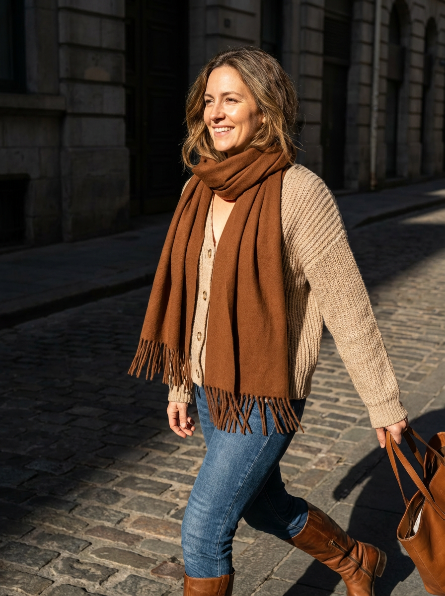 Wear it wrapped or draped—simple and versatile for any autumn-winter outfit.